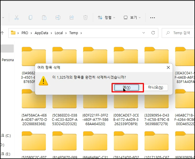 그럼 이 폴더에 있는 파일을 삭제해도 될까요?