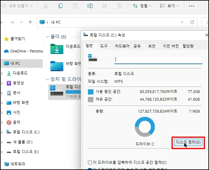 윈도우 컴퓨터를 사용하면 디스크 용량 부족 현상이 발생하게 됩니다.