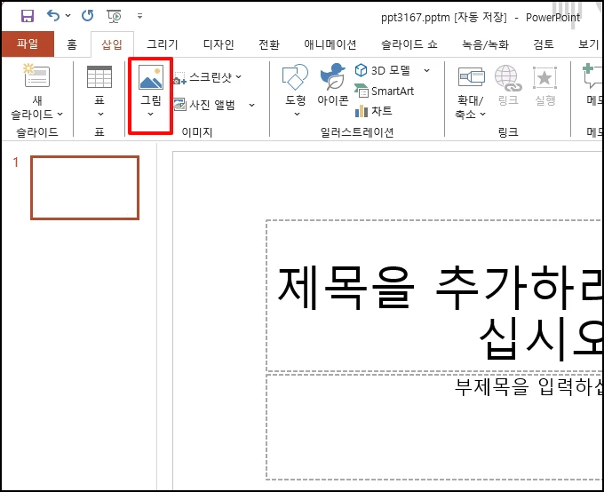 먼저 그립을 삽입합니다. 상단 메뉴 중 [그림]을 선택하시면 됩니다.