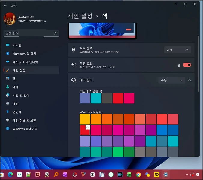 윈도우 11 작업 표시줄 색상 변경 필수 설정 완벽 가이드