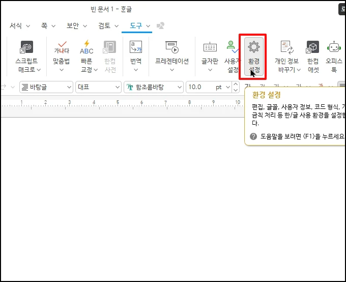 상단 메뉴 중 [도구]-[환경 설정]을 선택합니다.